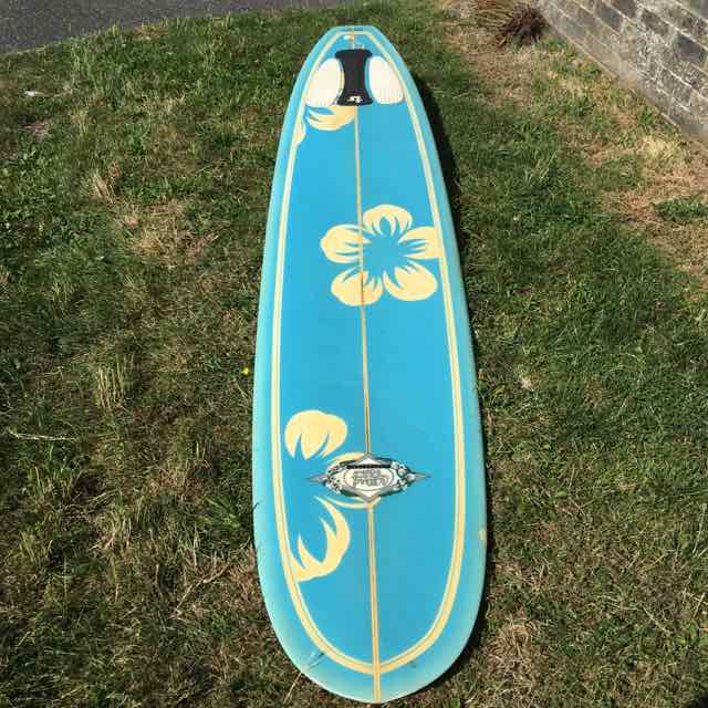 The bottom shape has a parallel nose channel which gives amazing wave catching and reduces the apprenticeship of learning to ride the nose. This then goes into roll and v , which pushes the water out to the rail for smooth quick cutbacks. The rail has a 50/50 egg shape, this aides noseriding as the water spirals round it holding it in the wave face. Owning one of these is a pure joy and my all time favourite.