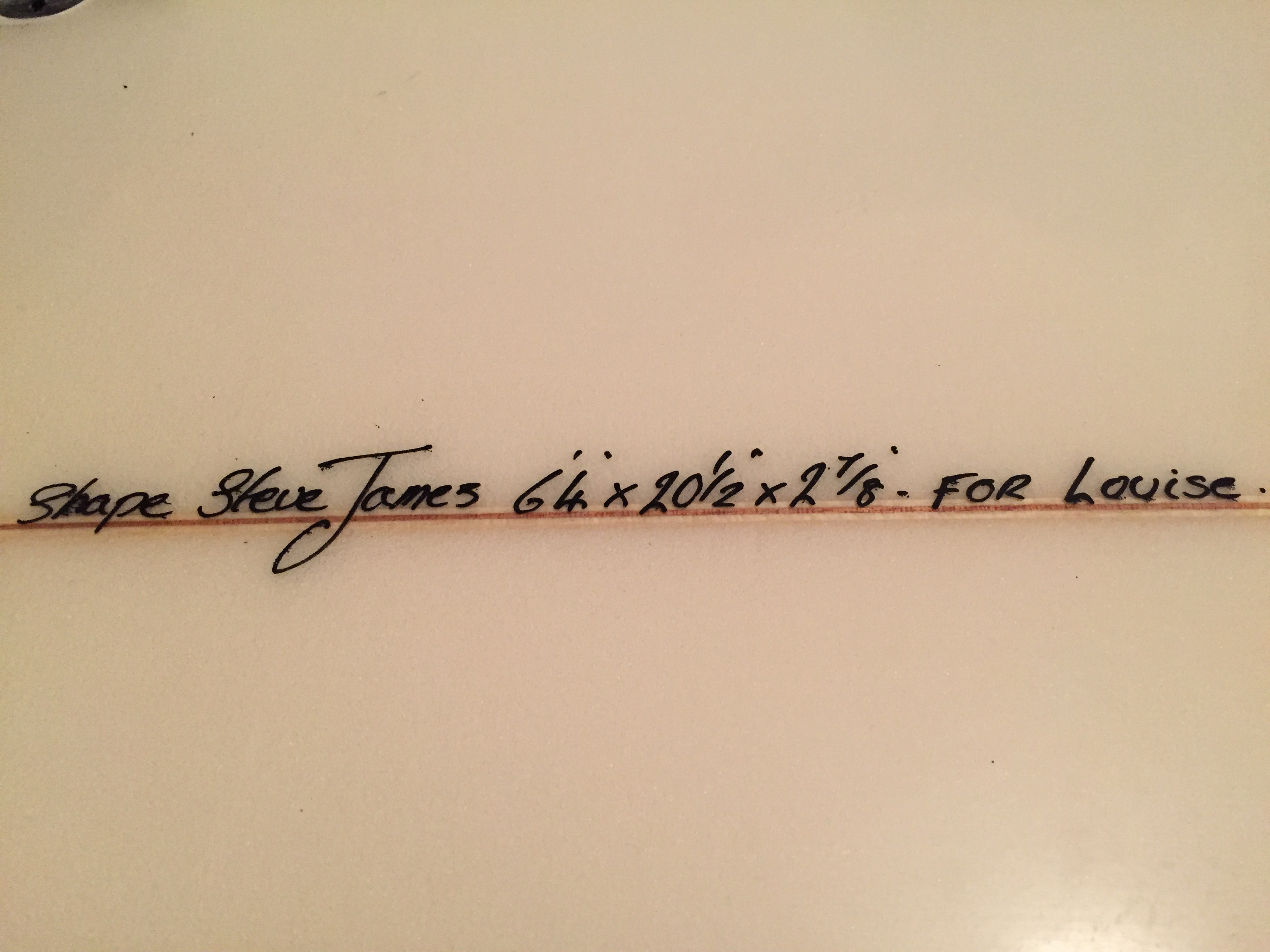 It is less than a year old and was shaped in Bude by Steve James at Mellow Wave. The dimensions are: 6'4" x 201/2 x 27/8. It has a few pressure marks on the deck, and it had a little bash on the nose which has been professionally fixed. It has good volume and rides beautifully.