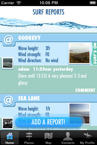 The surf reporter app is available to download here http://itunes.apple.com/gb/app/sharkbait-surf-reporter/id489168951?ls=1&mt=8